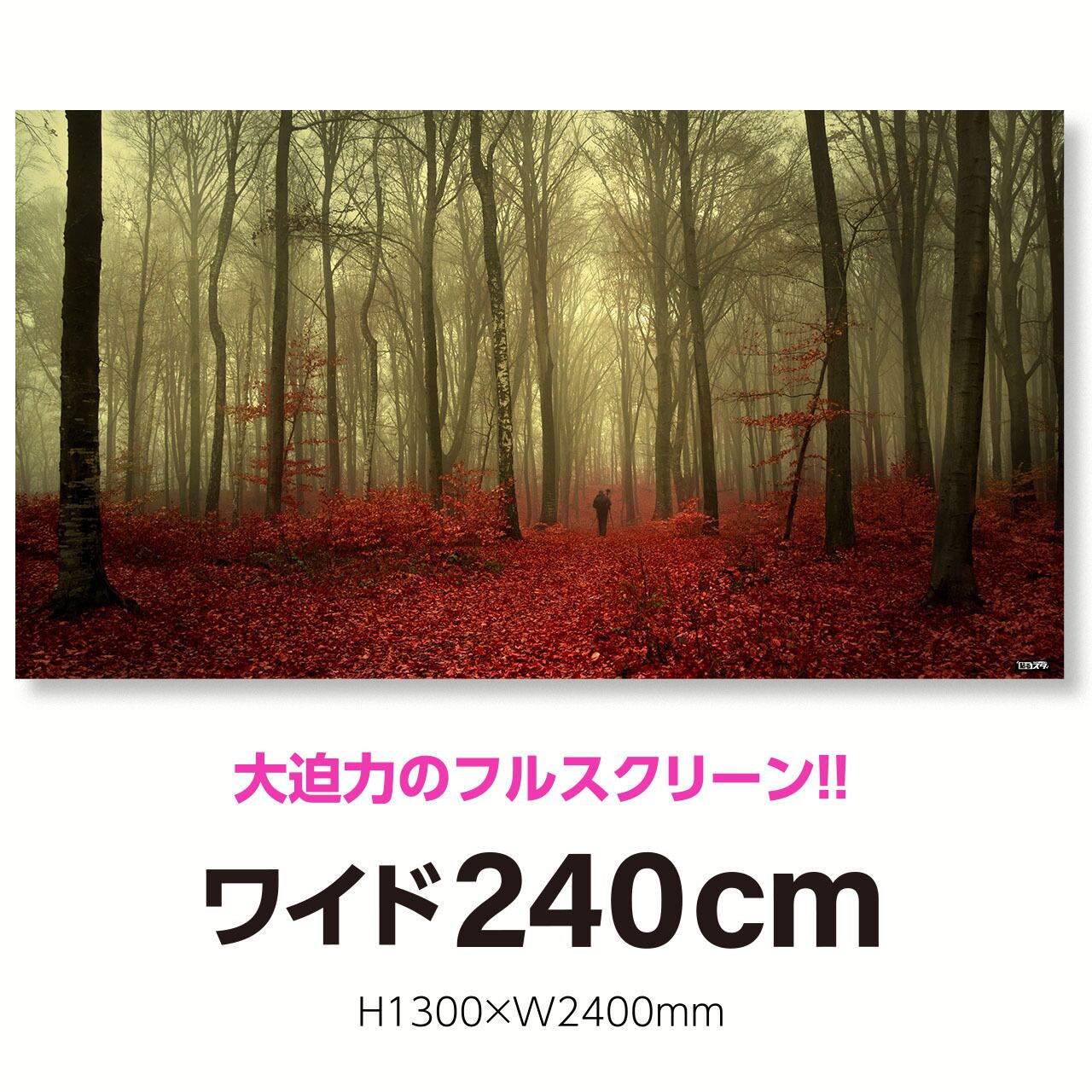 高さ1m30cm横幅2m40cmの特大スクリーンタイプ。テレワークはもちろん、Youtubeなどの本格的な動画配信ブースの背景に大活躍のドデカサイズ!! 個性溢れる即席スタジオであなた独自を演出しよう!!