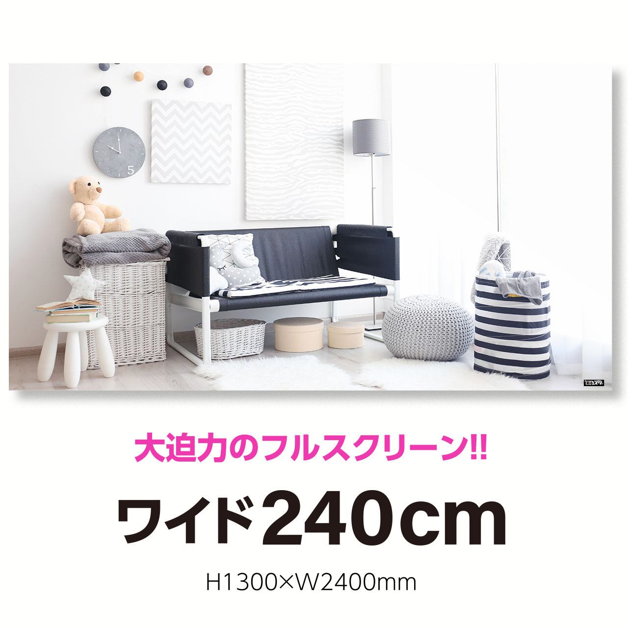高さ1m30cm横幅2m40cmの特大スクリーンタイプ。テレワークはもちろん、Youtubeなどの本格的な動画配信ブースの背景に大活躍のドデカサイズ!! 個性溢れる即席スタジオであなた独自を演出しよう!!