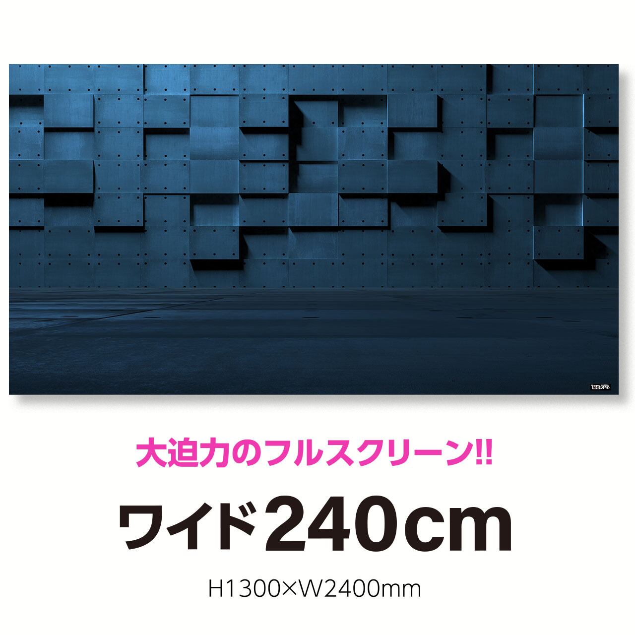 高さ1m30cm横幅2m40cmの特大スクリーンタイプ。テレワークはもちろん、Youtubeなどの本格的な動画配信ブースの背景に大活躍のドデカサイズ!! 個性溢れる即席スタジオであなた独自を演出しよう!!