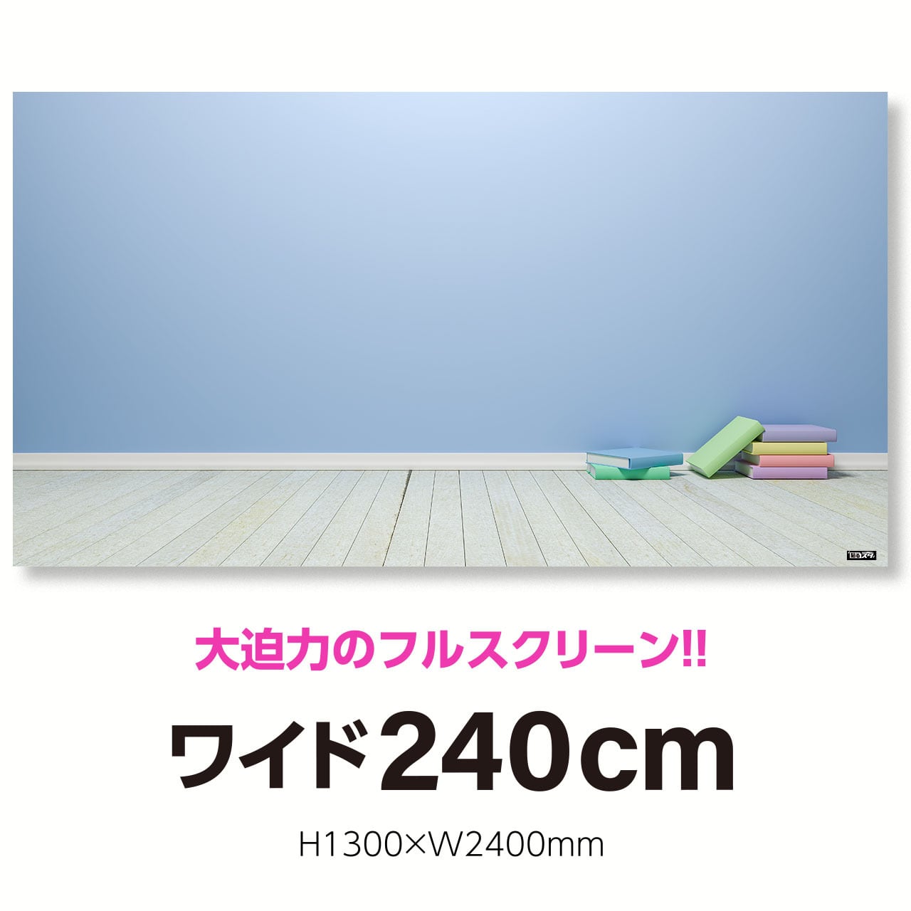 高さ1m30cm横幅2m40cmの特大スクリーンタイプ。テレワークはもちろん、Youtubeなどの本格的な動画配信ブースの背景に大活躍のドデカサイズ!! 個性溢れる即席スタジオであなた独自を演出しよう!!