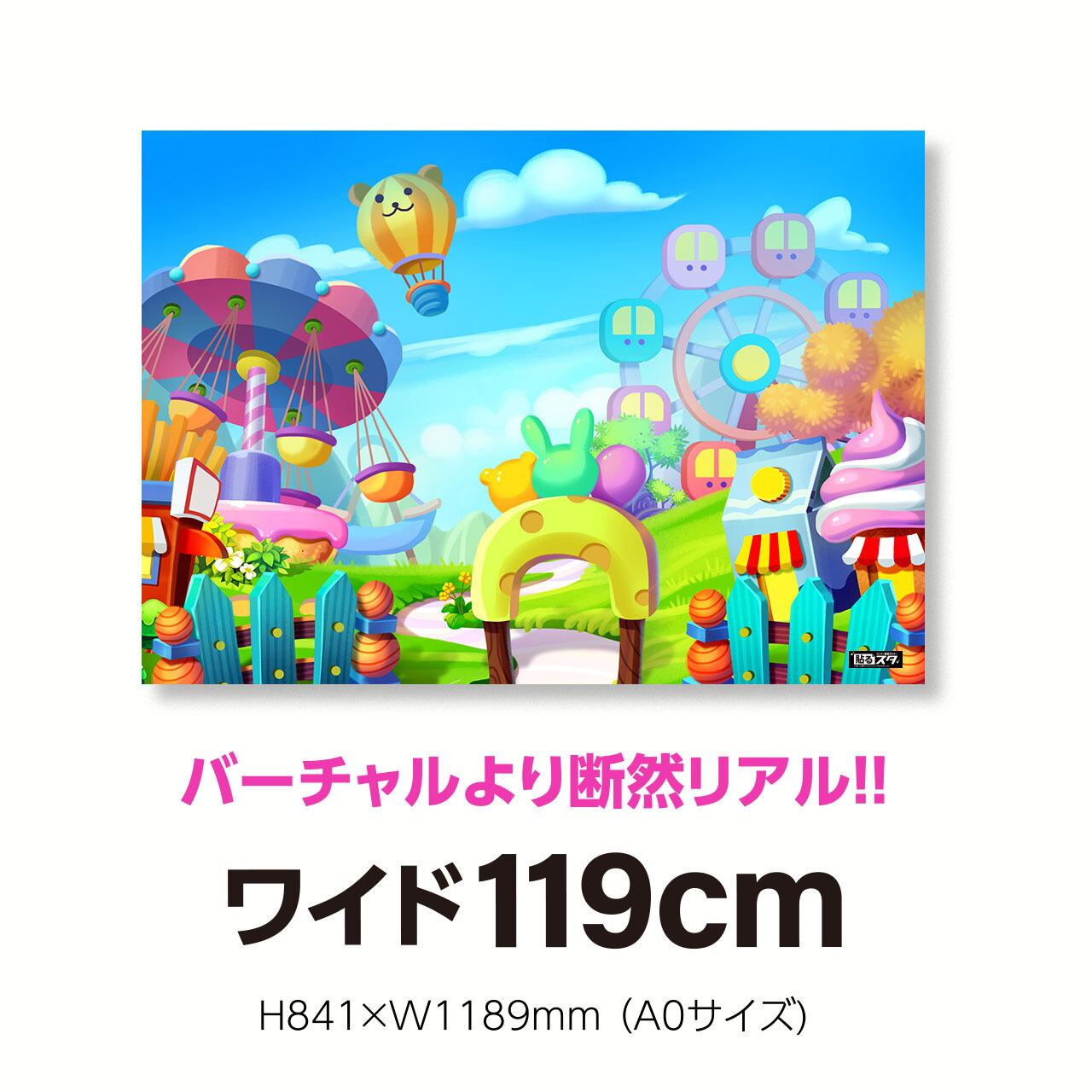 高さ84cm横幅1m19cmのA0規格サイズ。インスタなどSNSの写真撮影の背景に最適!!