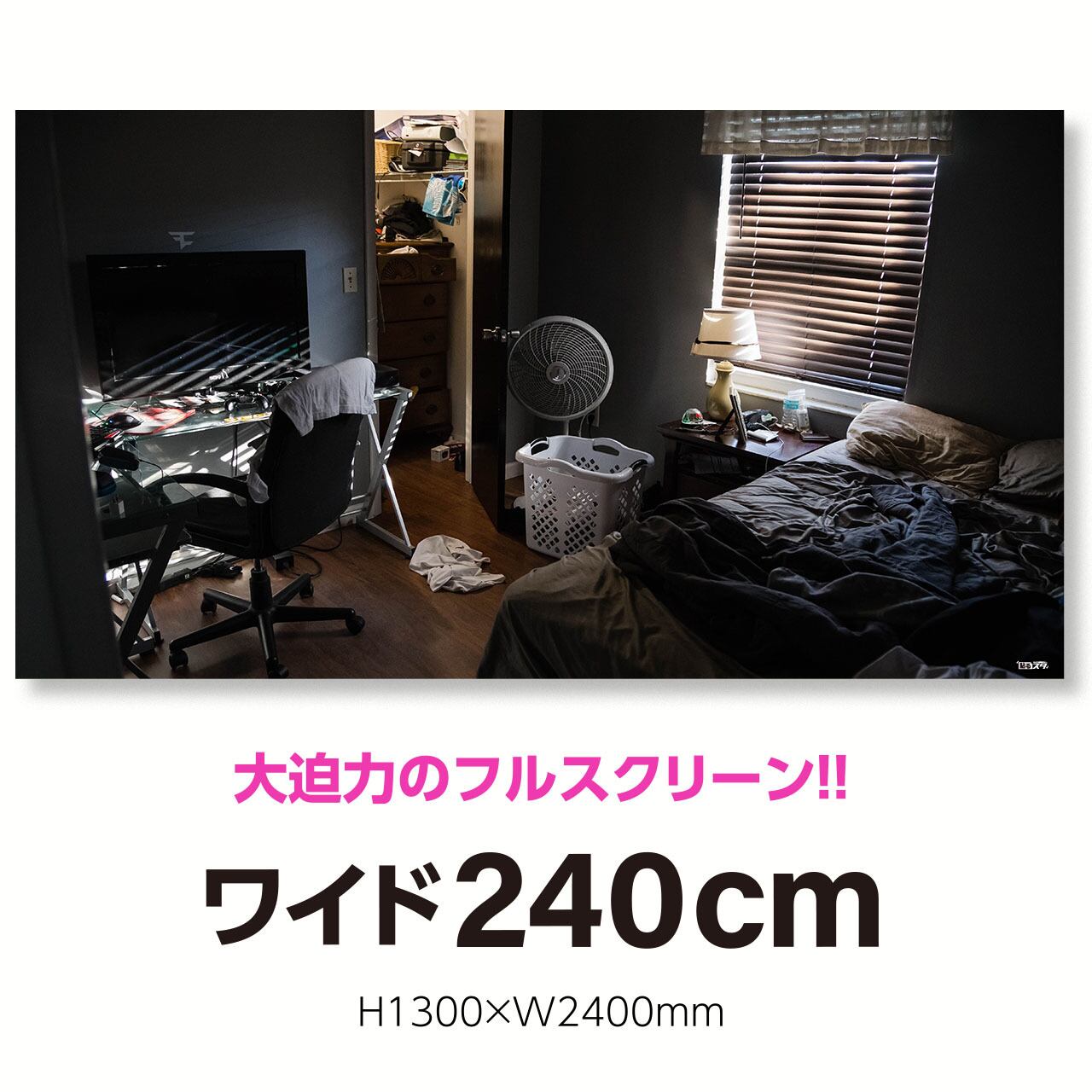 高さ1m30cm横幅2m40cmの特大スクリーンタイプ。テレワークはもちろん、Youtubeなどの本格的な動画配信ブースの背景に大活躍のドデカサイズ!! 個性溢れる即席スタジオであなた独自を演出しよう!!