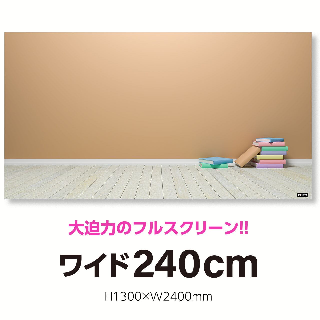 高さ1m30cm横幅2m40cmの特大スクリーンタイプ。テレワークはもちろん、Youtubeなどの本格的な動画配信ブースの背景に大活躍のドデカサイズ!! 個性溢れる即席スタジオであなた独自を演出しよう!!