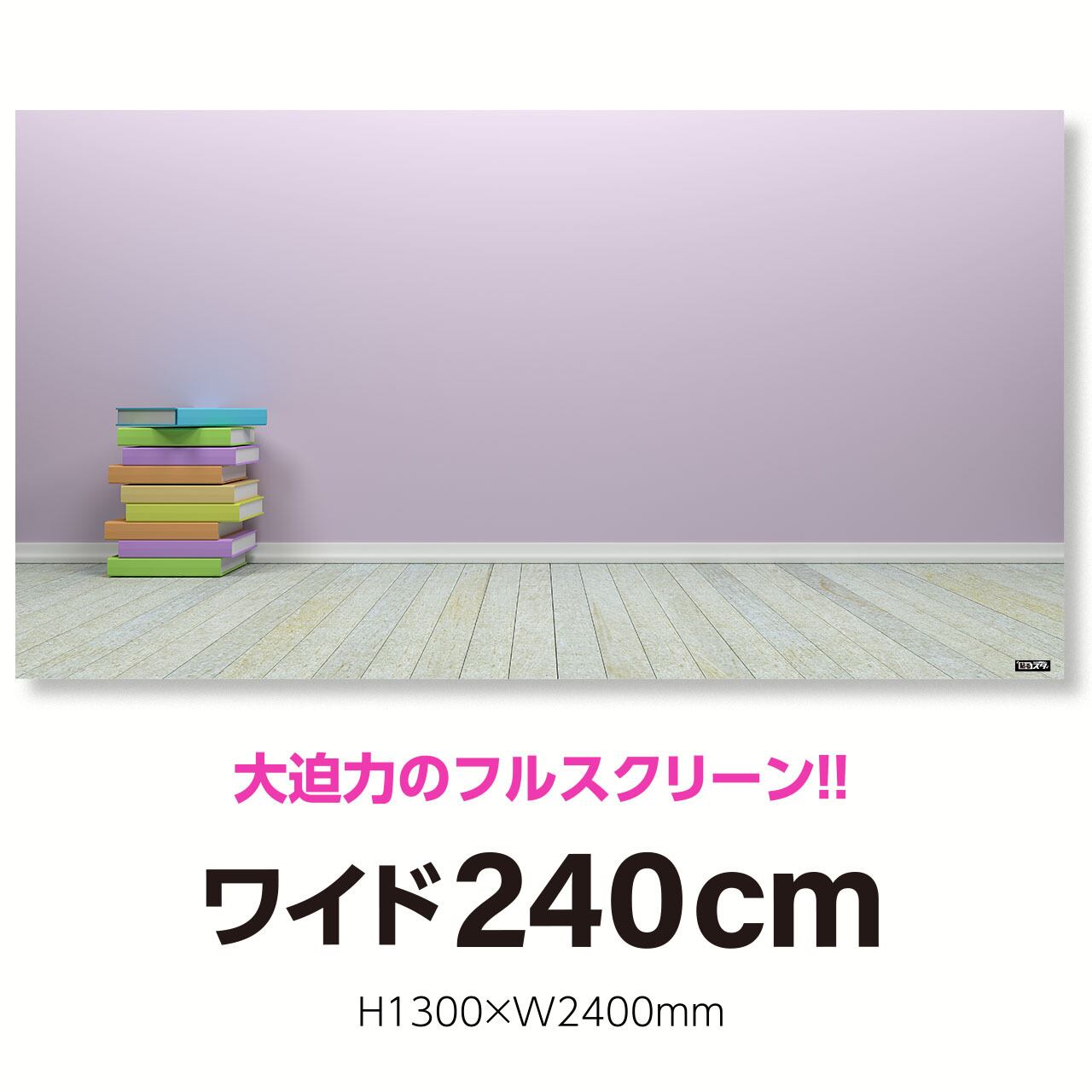 高さ1m30cm横幅2m40cmの特大スクリーンタイプ。テレワークはもちろん、Youtubeなどの本格的な動画配信ブースの背景に大活躍のドデカサイズ!! 個性溢れる即席スタジオであなた独自を演出しよう!!