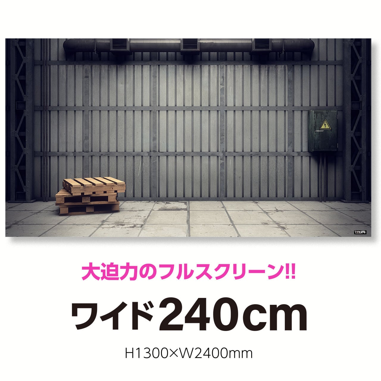 高さ1m30cm横幅2m40cmの特大スクリーンタイプ。テレワークはもちろん、Youtubeなどの本格的な動画配信ブースの背景に大活躍のドデカサイズ!! 個性溢れる即席スタジオであなた独自を演出しよう!!