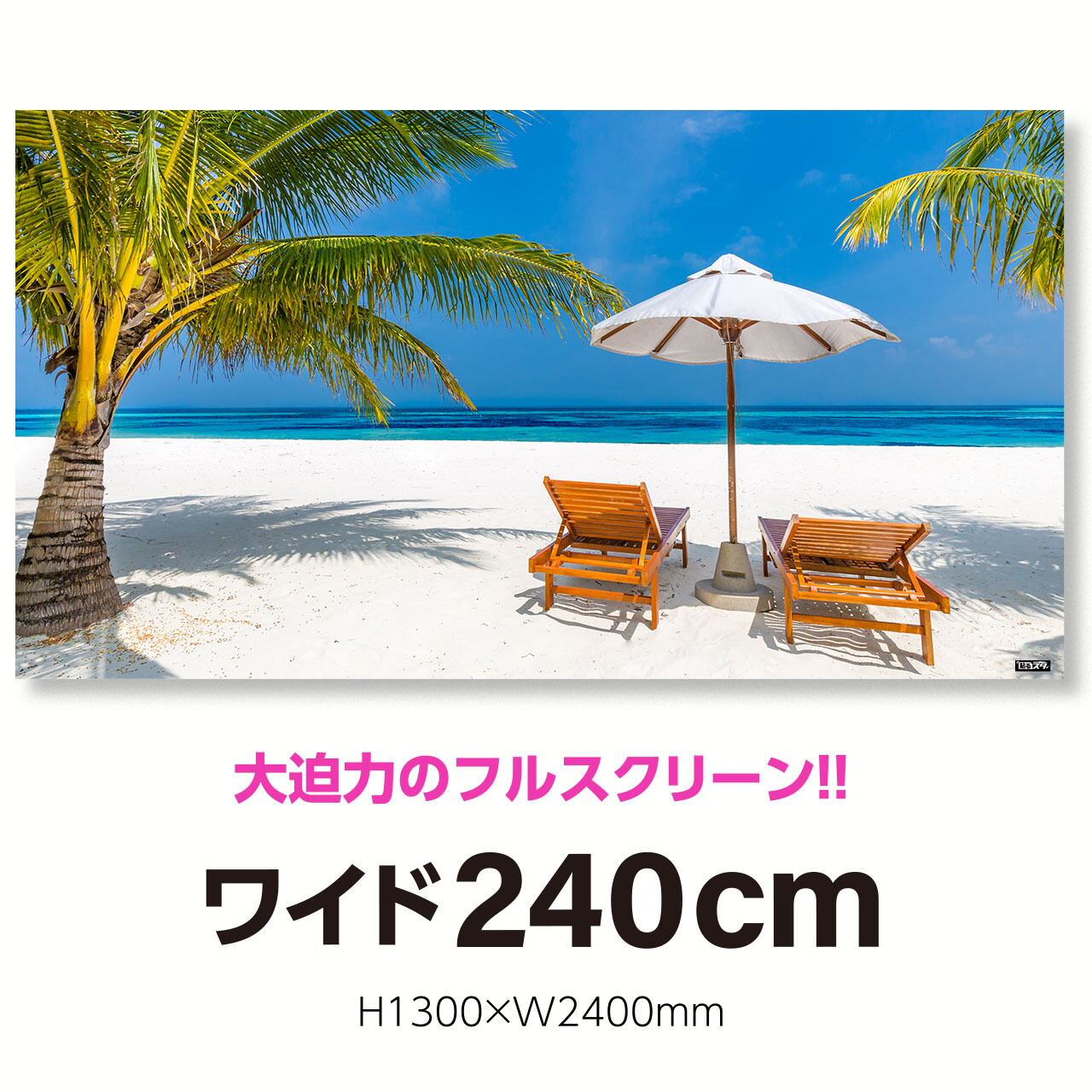 高さ1m30cm横幅2m40cmの特大スクリーンタイプ。テレワークはもちろん、Youtubeなどの本格的な動画配信ブースの背景に大活躍のドデカサイズ!! 個性溢れる即席スタジオであなた独自を演出しよう!!