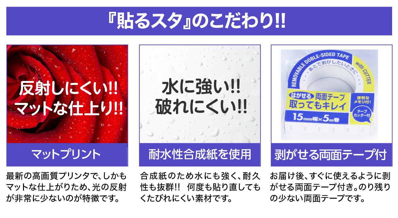 ●サイズH900mmW1800mm ●合成紙(耐水性)●貼ってはがせるシール付き