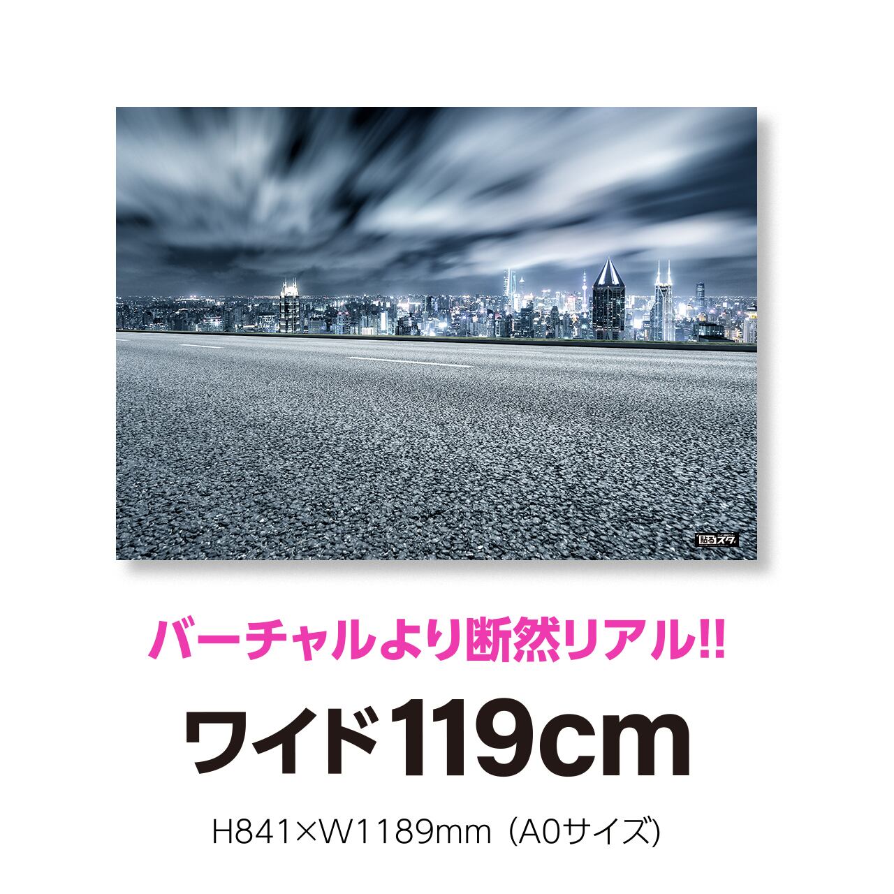 高さ84cm横幅1m19cmのA0規格サイズ。インスタなどSNSの写真撮影の背景に最適!!