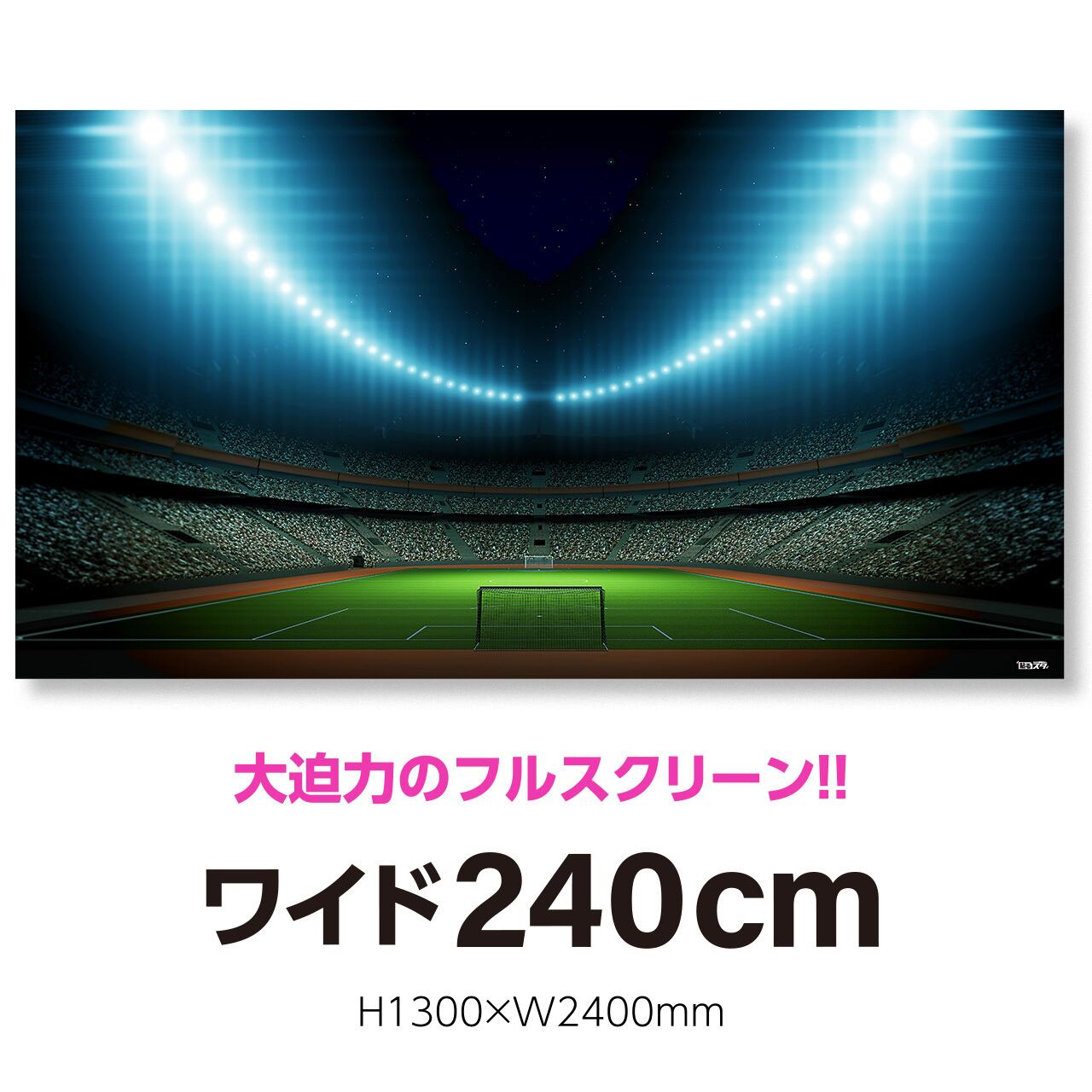 高さ1m30cm横幅2m40cmの特大スクリーンタイプ。テレワークはもちろん、Youtubeなどの本格的な動画配信ブースの背景に大活躍のドデカサイズ!! 個性溢れる即席スタジオであなた独自を演出しよう!!